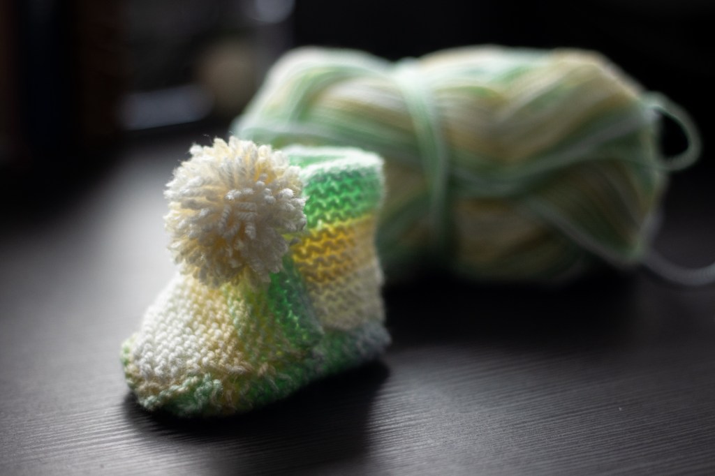 You have knitted a cute pair of newborn booties.