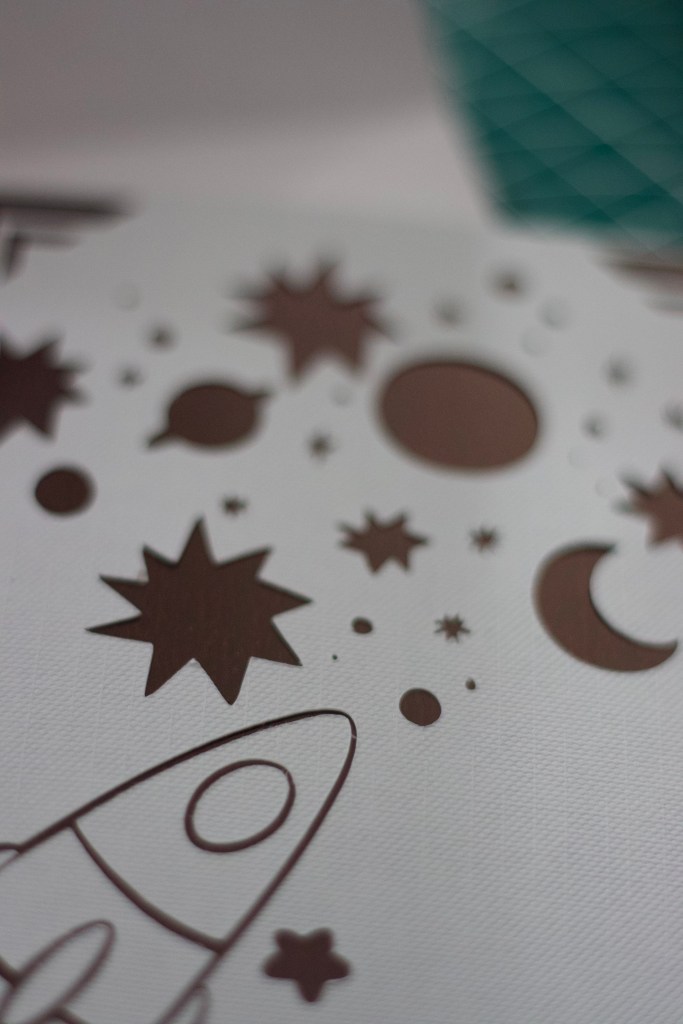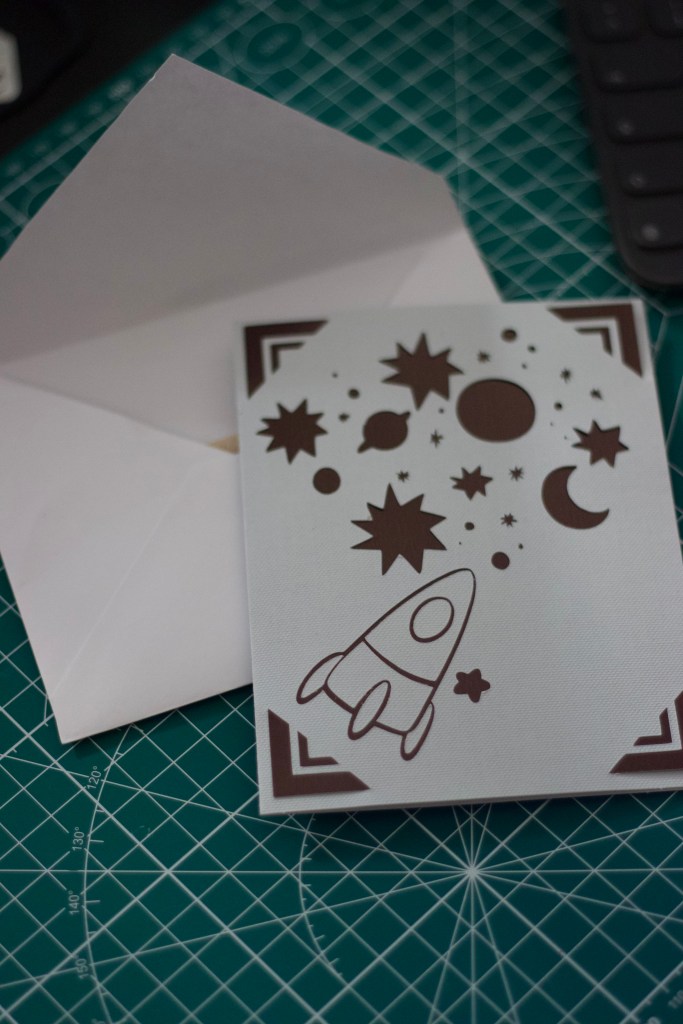 - You are ready to add image to your card. I searched for planet and rocket images and selected the two below for my card. Re-sized and moved on the front of my card until I like the setup.