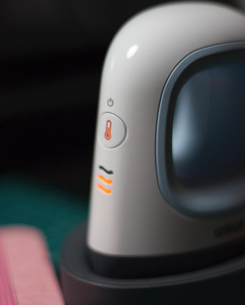 Since this was my first HTV project with the EasyPress, I consult the Heat guide on Cricut website for the right temperature setting and exposure time for my EasyPress mini. For this polyester cover and using the Cricut Smart Iron-On, the following steps were suggested: