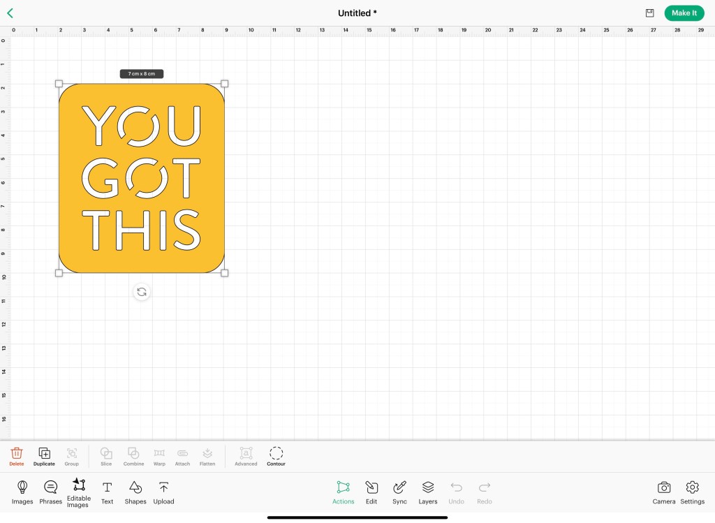 When I am satisfied with the aspect ratio and am ready to start, I move to the upper right corner and press the MAKE IT-button. Select the type of mat and prepare the material for the cut.