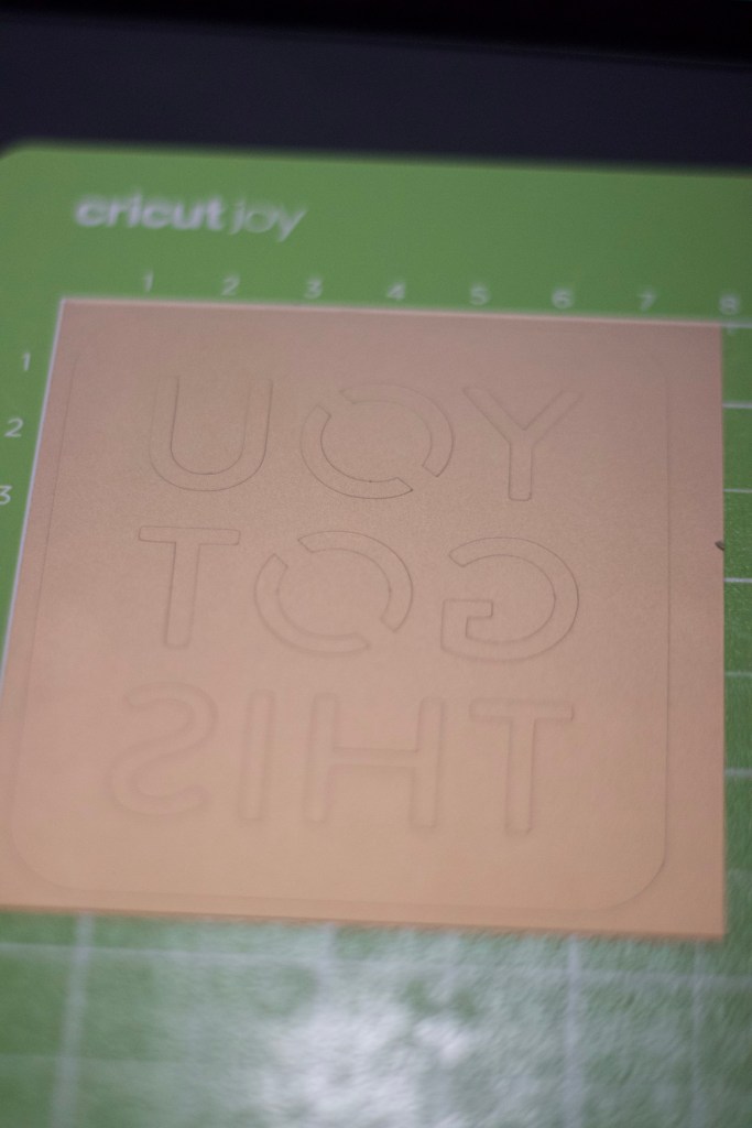 Following the instruction on the load window, I check that my blade is inserted, load my mat with the HTV and press GO. The Cricut Joy will do its magic.