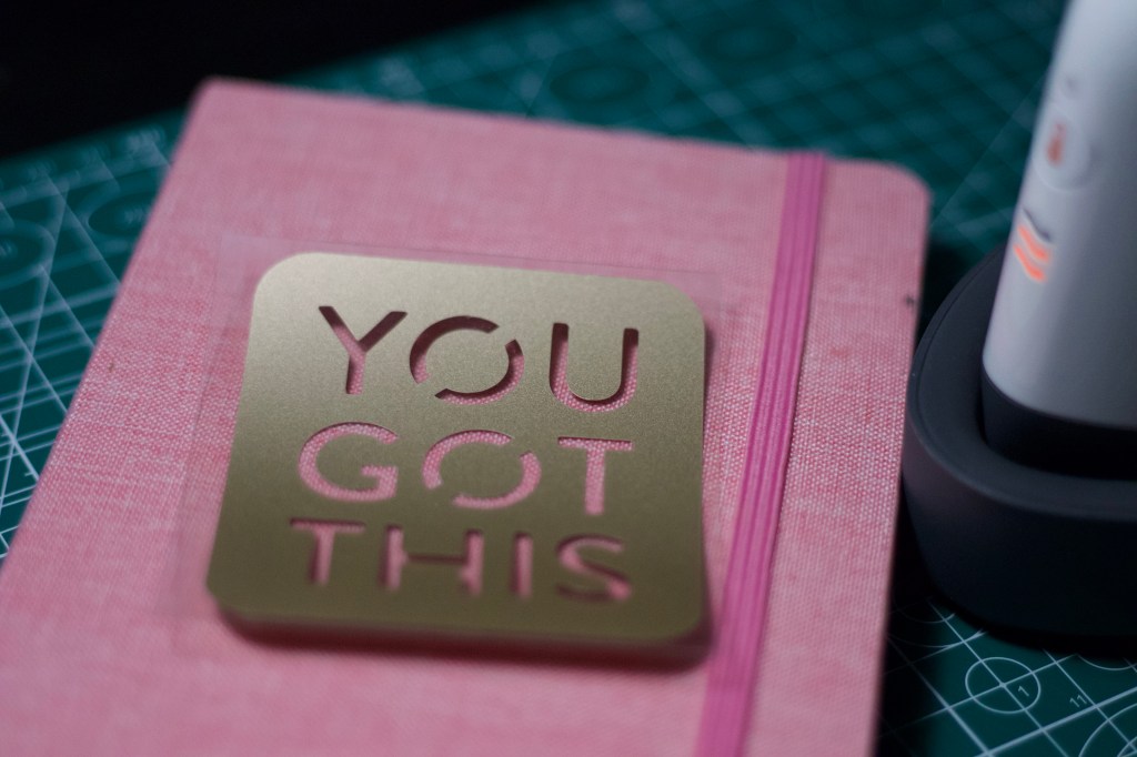 I wanted something inspirational to decorate this cover so I searched Design Space for a free design and found the “YOU GOT THIS” image (#M211778D9). I think it is perfect for this notebook and since the cover is made of fabric, I decide to go for an Iron-On project and use my brand new Cricut EasyPress mini.
